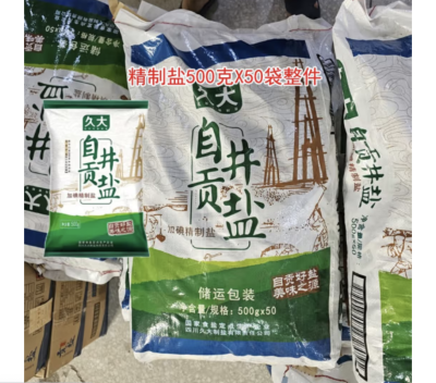 久大四川久大自贡井盐食盐精制盐500克深井矿盐食用盐批整箱 加碘自贡井盐500g整件50袋