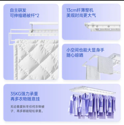 卡瑞琪(COURAGE)智能电动晾衣架阳台升降语音遥控隐形晒衣架隐藏式自动晾衣杆 A8-Z典雅黑 大屏照明+无线遥控
