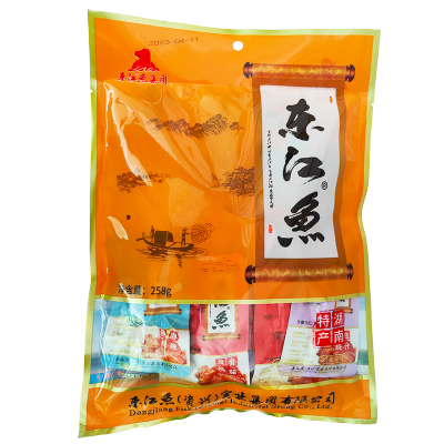 东江鱼258g高档糖果礼包,原料采用了东江翘嘴鱼为主材料,辅以桂皮,八角,孜然,花椒等大料,茶油烹制,外表金黄油亮,味道鲜香可口,越嚼越有味,礼包内含有劲辣,香辣,麻辣,山椒,微辣,鲍汁,番茄等各式综合口味