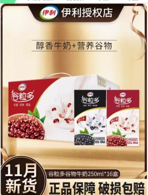 伊利谷粒多牛奶红谷黑谷红豆谷物风味燕麦奶250ml*12盒16盒送礼