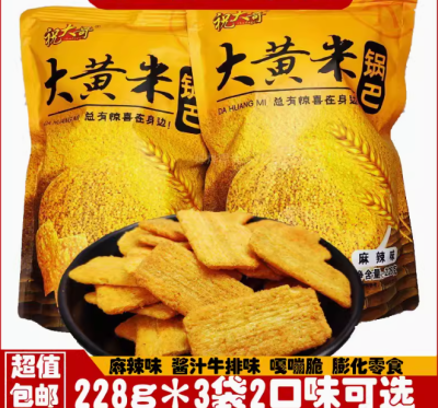 祝大哥大黄米锅巴228克*4袋麻辣酱汁牛排味网红膨化零食休闲