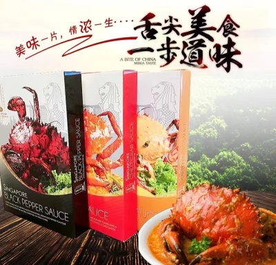 黑胡椒螃蟹酱料 如果你喜欢更辣更过瘾的口感,喜欢偏重的口味, 强烈推荐这款黑胡椒螃蟹酱料。 采用新加坡地道优质食材秘制而成, 黑胡椒经过“秘密配方”炒制:闻之,香气浓郁; 入口,那辣味一下窜入鼻腔,有如芥末般过瘾。 味道鲜美,辛香浓郁,正宗地道。 辣椒螃蟹酱料 如果你喜欢甜辣口味,又吃不了特别辣, 那这款酸甜辣口味且辣度适中的辣椒螃蟹酱料, 一定能俘获你的芳心。 采用十余种东南亚的辛香料, 特调带有东南亚风味的辣椒酱, 融合一点番茄酱的酸甜,烹煮成鲜香浓郁的酱汁。 馥郁酱汁包裹着新鲜食材,浓郁醇香, 在味蕾间停留不去的鲜甜辣劲,让人回味无穷。 这种酸甜辣独特的口感,正宗的南洋风味。 咸蛋黄螃蟹酱料 如果你是咸蛋黄爱好者, 那这款人气咸蛋黄螃蟹酱料不容错过。 任何菜式中只要加上了咸蛋黄,都能化腐朽为神奇, 这也是让咸蛋黄成为人人追捧的新加坡国民菜。 本身的鲜甜搭配着咸蛋黄的咸香, 更好的提升螃蟹的香味,色泽金黄诱人。 轻轻抿上一口,带着沙沙的口感, 原本已够新鲜清甜,又被冲撞出多一分咸蛋黄的醇香。 香味蔓延到口腔,绽放于舌尖, 在舌尖绵延回荡,让人欲罢不能。 一种味道不一定满足全家人的味蕾, 所以特此推出家庭组合装,三种味道一步到位。