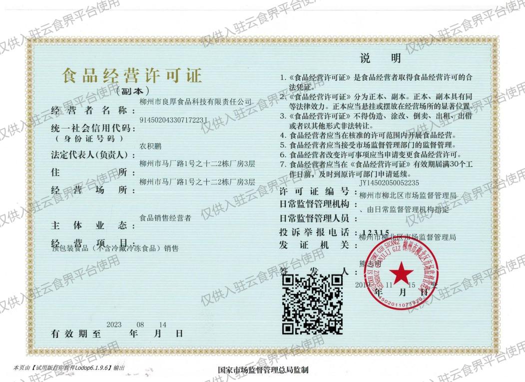 根据国家相关政策要求对网店经营者资质信息公示如下:
