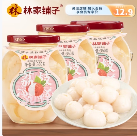 林家铺子 糖水荔枝罐头350g*3 玻璃罐送长辈儿童