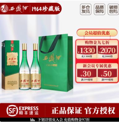【官方正品】西凤酒55度1964珍藏版500ml*2 凤香型纯粮