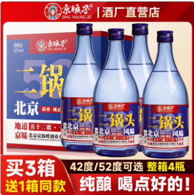 北京二锅头一斤半52度750ml*4瓶浓香型白酒整箱特价包邮纯粮