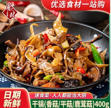 肴之林干锅三菌400g袋宴席餐饮半成品香菇平菇鹿茸菇
