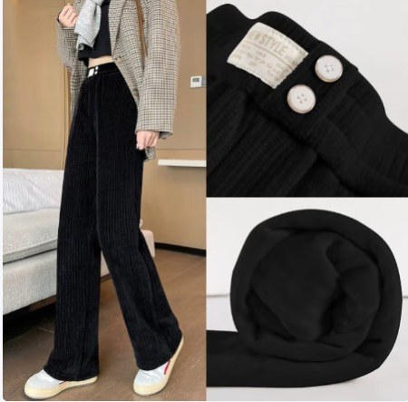T-8T加厚雪尼尔阔腿裤子女高腰垂感秋冬季新款灯芯绒春秋