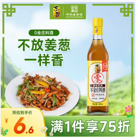 金庄料酒500ml【0添加】去腥提味无防腐剂