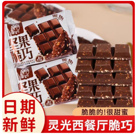 灵光西餐厅坚果脆巧38克丝滑牛奶黑巧克力味网红甜蜜零食节日礼