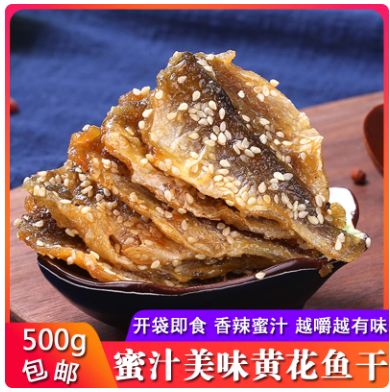 蜜汁小黄鱼干500g即食香酥芝麻烤小黄花鱼干小鱼仔片舟山海鲜零食