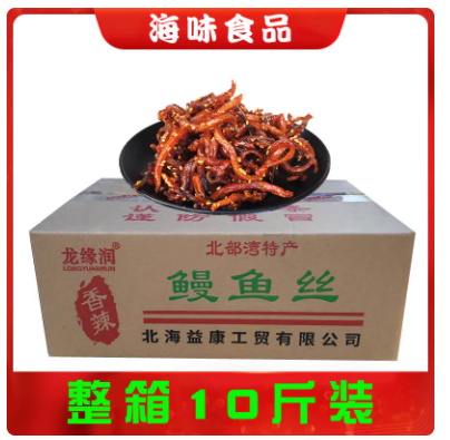 整件批售北海龙润芝麻蜜汁香辣鳗鱼丝鳗鱼条即食香辣鱼干一箱12斤