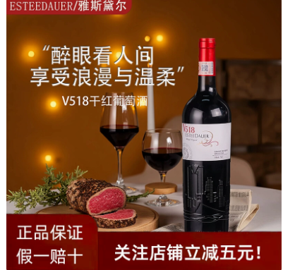 智利原酒进口红酒干红雅斯黛尔红酒V518赤霞珠正品红酒