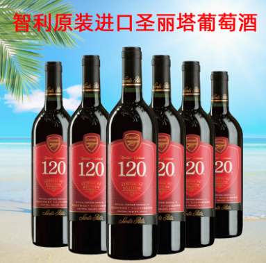 智利原装进口圣丽塔120阿森纳纪念赤霞珠干红葡萄酒750ml*6瓶整箱