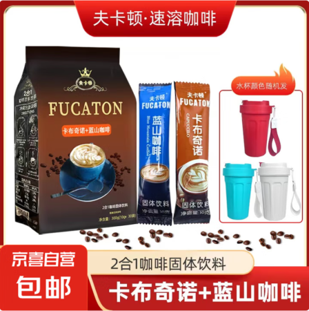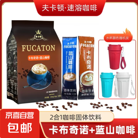 卡布奇诺咖啡蓝山风味奶香柔顺固体饮料速溶三合一咖啡 10g*30条混合袋装(加杯子)