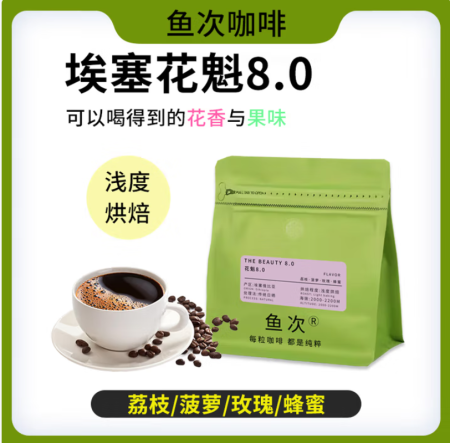 鱼次 埃塞精品冷萃手冲咖啡豆耶加雪菲瑰夏花魁浅度烘焙纯美式黑咖啡 花魁8.0 浅度烘焙 100g/袋