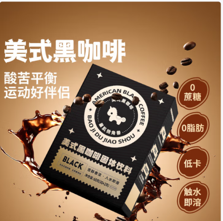 暴肌独角兽纯黑咖啡0脂美式速溶咖啡粉运动健身燃减学生熬夜(2025年1-2月) 【店长推荐】美式黑咖啡2g*60条
