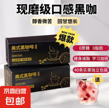 美式黑咖啡40条/盒阿拉比卡豆0蔗糖0脂肪0添加健身搭档熬夜必备 1大盒40条+冰川杯1个