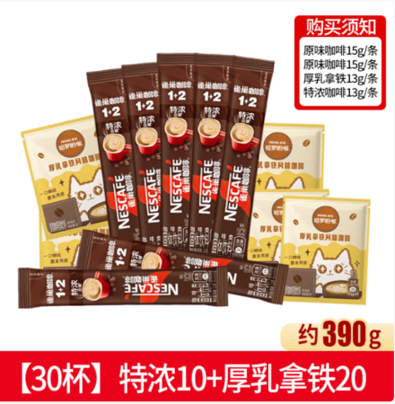 雀巢咖啡哈罗呦咖厚乳拿铁风味3合1即溶速溶咖啡粉饮品 [30杯390g]特浓+厚乳限期26-5月