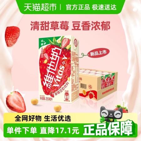 【新品上市】维他奶草莓豆奶饮料250ml*24盒植物蛋
