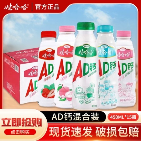 娃哈哈AD钙奶混合味450ml*15瓶原味草莓味水