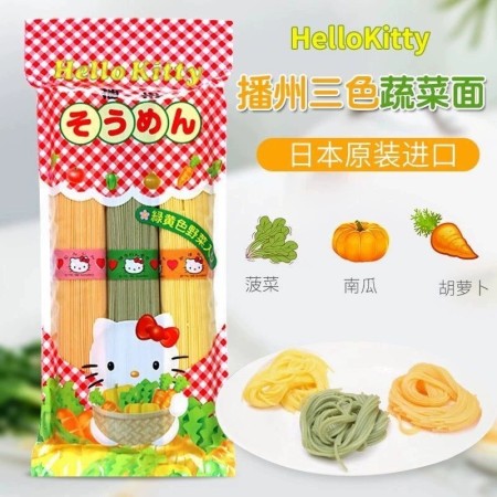 日本进口播州HelloKitty三色面儿童营养蔬菜辅食宝宝细面条300g