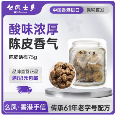 香港么凤士多陈皮话梅75g有核果干解乏困晕酸甜网红蜜饯