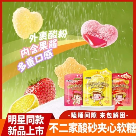 同款酸砂夹心软糖Q弹草莓苹果柠檬味软糖果57g袋装