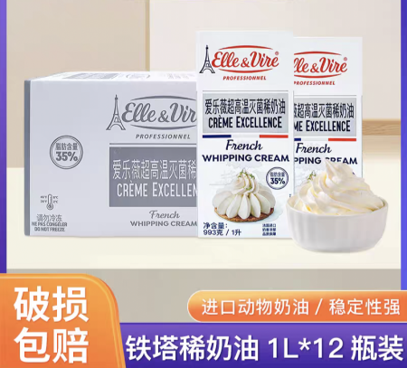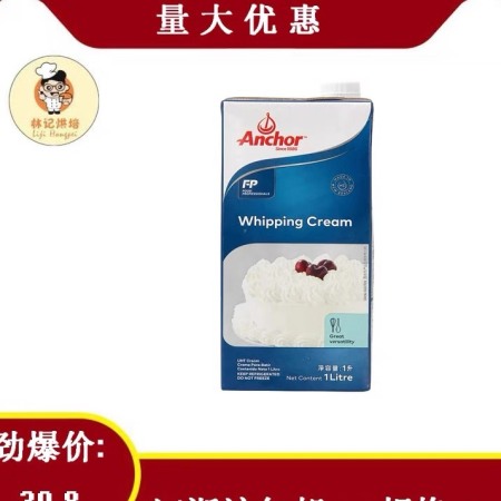 性鲜奶油1L 易打发稀奶油蛋糕裱花蛋挞 烘焙原料