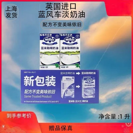 蓝米吉淡奶油1L整箱 蓝风车动