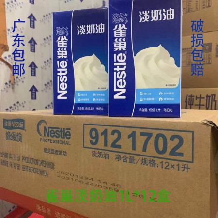 性淡奶油1L*12盒 蛋糕裱花稀奶油奶茶烘焙原料包邮
