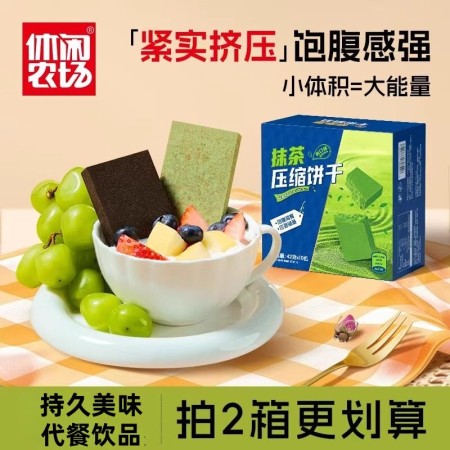 休闲农场压缩饼干抹茶黑曲奇代餐饱腹解馋零食420g
