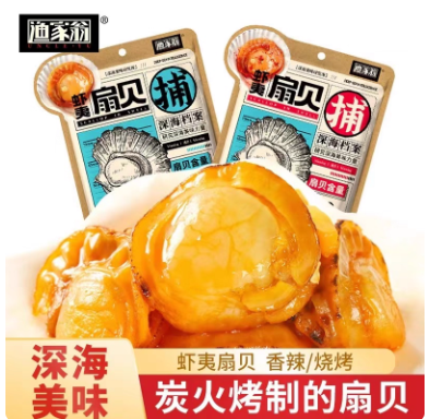 渔家翁鲍菇爆料扇贝75g 开袋即食香辣碳烤虾夷扇贝小零食休闲食品