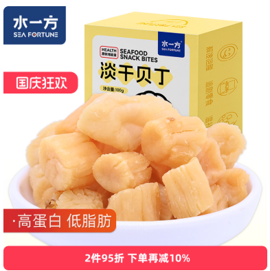 水一方即食淡干贝丁特产海货开袋即食干货大号瑶柱扇贝肉海鲜零食