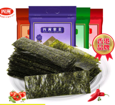 四洲紫菜海苔即食海苔片原味海味零食儿童寿司海苔拌饭料40克*1袋