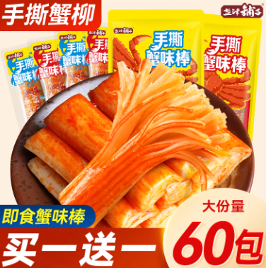 盐津铺子手撕蟹柳蟹味棒即食网红蟹肉棒健康零食休闲小吃食品解馋