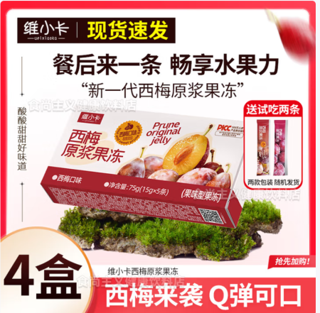 维小卡西梅果冻15g*5支/盒果蔬原浆果冻升级款独立小包装 西梅果冻75g*4盒装