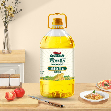 金丰盛物理压榨玉米胚芽油5L 桶装家用炒菜烘焙蛋糕食用油