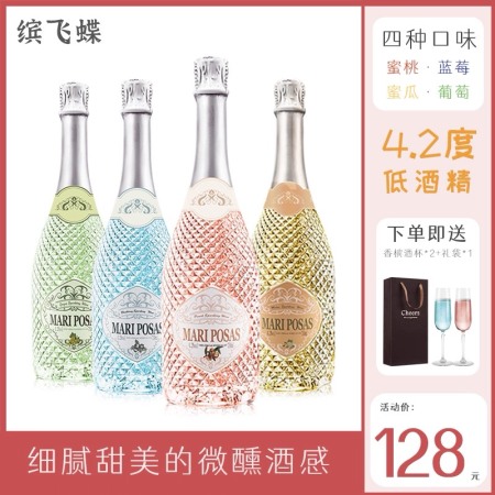 送2个酒杯微醺起泡酒葡萄酒女士低度红酒甜酒气泡酒果酒鸡尾酒