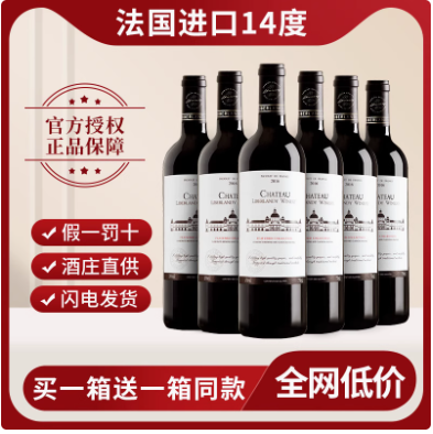 法国红酒整箱干红葡萄酒赤霞珠红酒14度官方正品旗舰店礼盒装送礼
