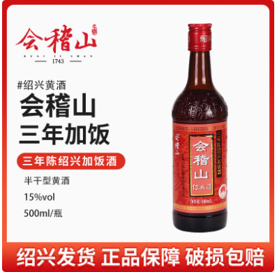 会稽山绍兴黄酒三年加饭酒500ml瓶装半干型糯米花雕老酒3年陈酿