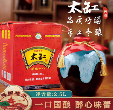 大越官方旗舰店绍兴八年陈黄酒手工酿造花雕酒纯粮半干型1.5L坛装