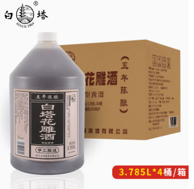 绍兴特产白塔五年陈花雕酒半甜型3.785L桶装5年老酒纯粮酿造