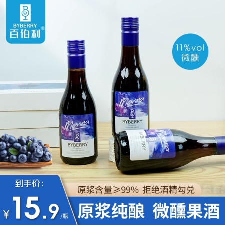 百伯利蓝莓酒果酒微醺少女甜酒11度女士低度女生水果酒187ml小瓶