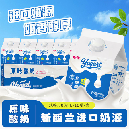 优嗨原味酸奶10盒装300ml/盒营养早餐醇厚丝滑酸奶风味饮品批发