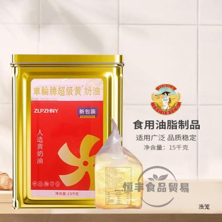 车轮牌正黄 油人造黄奶油 咸味黄油植物黄油烘焙牛排西饼15kg桶装