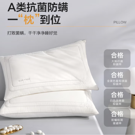 水星家纺 A类蚕丝枕 抗菌防螨枕头芯单人 成人颈椎枕丝棉枕芯 丝梦【对装/高约14cm】 48cm ×74cm