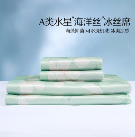 水星家纺 凉席冰丝席 A类可水洗凉感夏季凉席 可折叠居家凉席二/三件套 风沐花意【冰力科技&海藻抑菌】 (三件套) 200cm*180cm