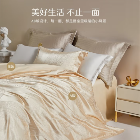 水星家纺四件套床上用品 大提花面料 高级轻奢裸睡套件 法式浪漫被套床单 凯尔纳斯【轻奢法式/金色】 1.8米床, 床单款 被套220*240cm