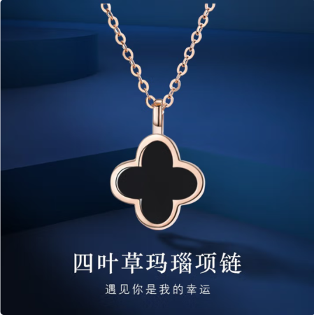 OKO七夕情人节礼物送女友生日礼物四叶草玛瑙项链女锁骨链老婆结婚 【当次日达】四叶草项链(黑玛瑙)